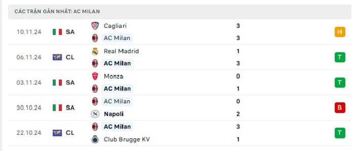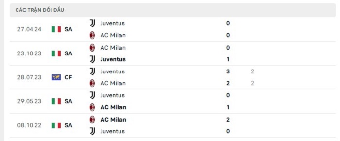 Bảng  bóng đá trận đấu AC Milan vs Juventus