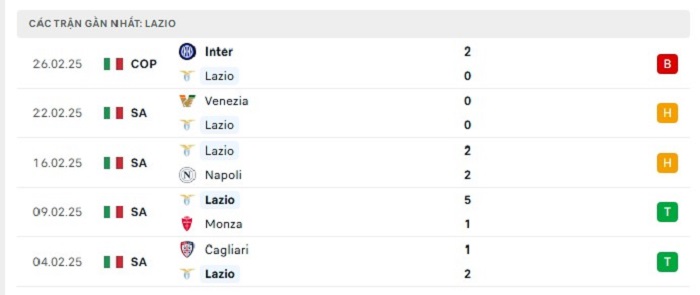 - Phong độ Lazio