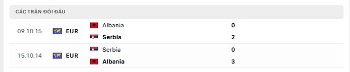 Lịch sử đối đầu của Albania vs Serbia
