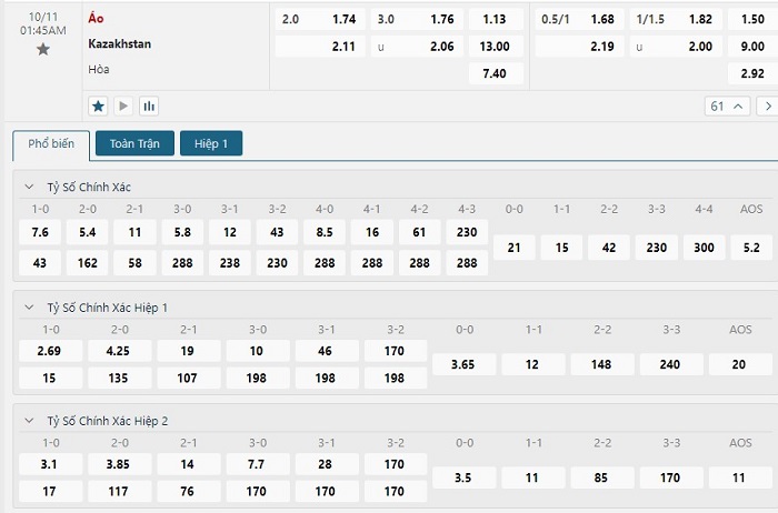 Tin soi kèo tài xỉu Áo vs Kazakhstan