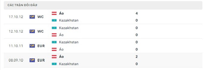 Lịch sử đối đầu của Áo vs Kazakhstan