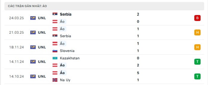 Phong độ gần đây Áo vs Romania