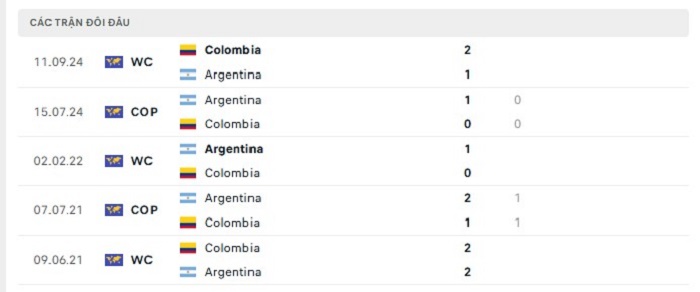 Trong quá khứ có thể thấy được Colombia vốn là đối thủ không hề dễ chơi với Argentina, thật vậy khi mà 10 lần gặp nhau trước đây của hai đội thì đội chủ nhà thắng 3 trong khi 2 chiến thắng thuộc về đội khách theo kèo châu Âu được niêm yết, đáng kể tới có tới 5 lần hai đội bất phân thắng bại theo mốc kèo châu Âu được niêm yết có thể thấy được việc bất phân thắng bại của hai đội không hề dễ dàng, do vậy mà không loại trừ khả năng chia điểm của hai đội ở lần gặp nhau sắp tới.