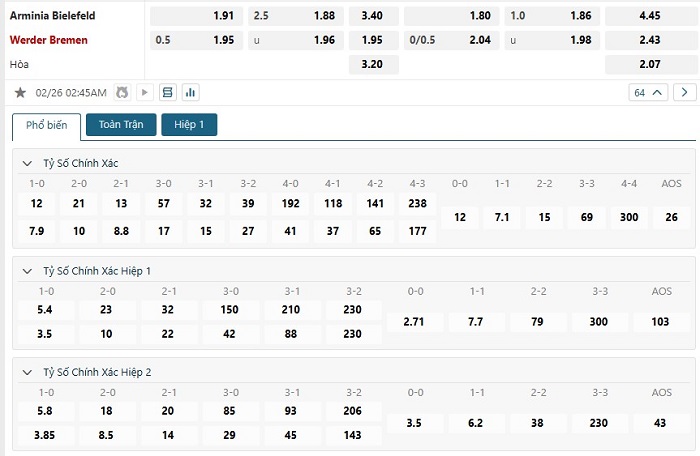 Soi kèo tỷ số Arminia Bielefeld vs Werder Bremen