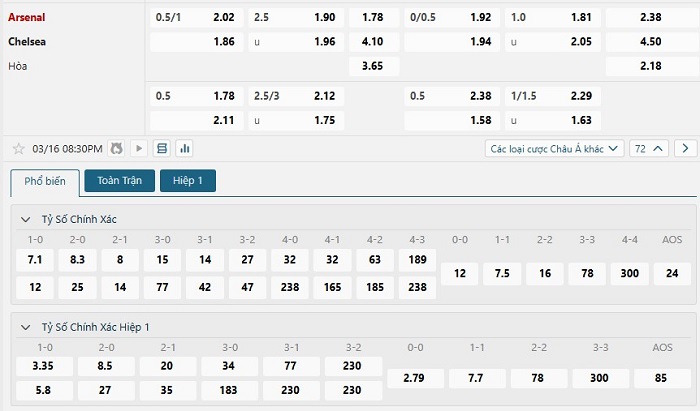 Soi kèo châu Á, kèo chấp Arsenal vs Chelsea