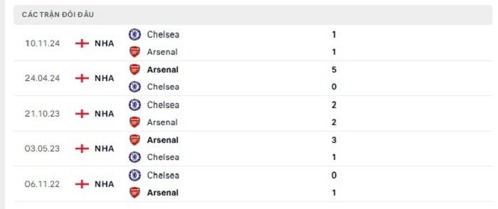 Phong độ gần đây Arsenal vs Chelsea