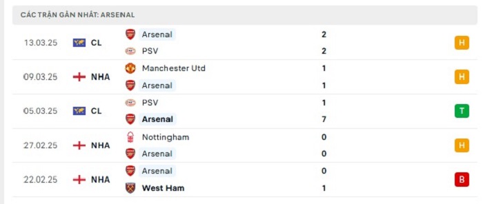 - Phong độ Arsenal