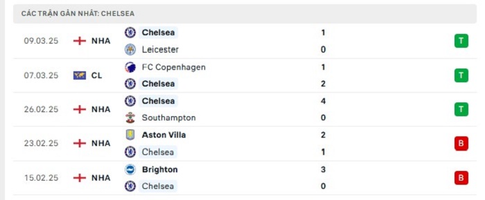 - Phong độ Chelsea
