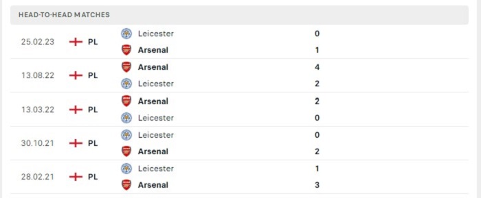 Lịch sử đối đầu của Arsenal vs Leicester City