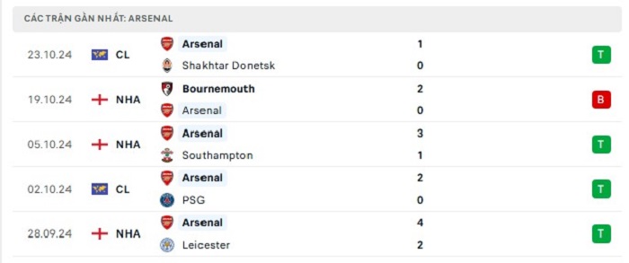 Bảng bóng đá trận đấu Arsenal vs Liverpool