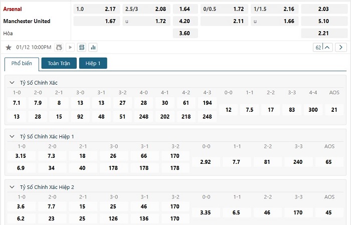 - Dự đoán tỉ số trận đấuArsenal vs Manchester United