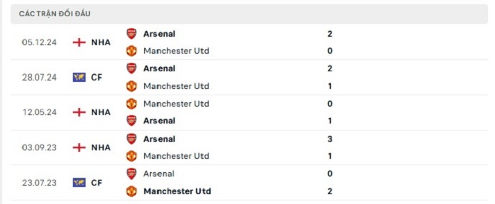 Lịch sử đối đầu của Arsenal vs Manchester United