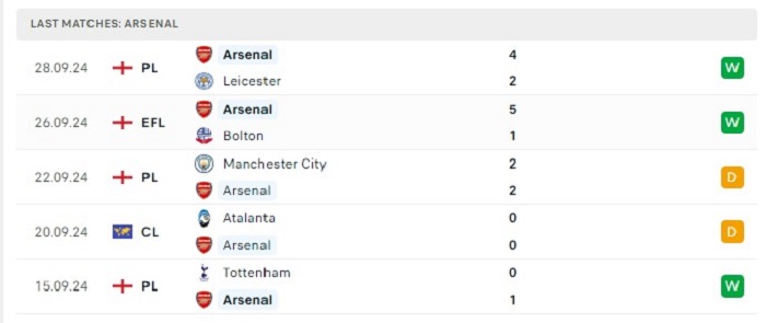 Phong độ gần đây Arsenal vs Paris Saint Germain