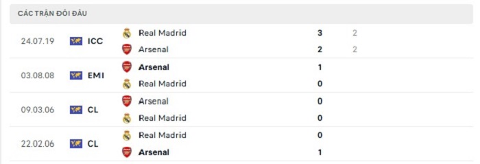 Lịch sử đối đầu của Arsenal vs Real Madrid