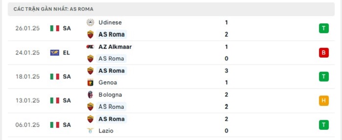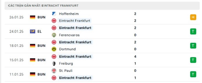 Phong độ gần đây AS Roma vs Eintracht Frankfurt