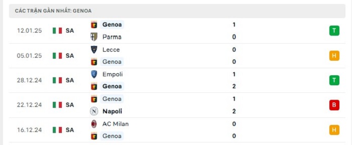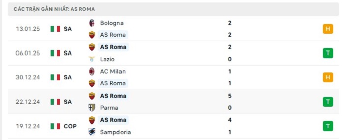 Bảng bóng đá trận đấu AS Roma vs Genoa