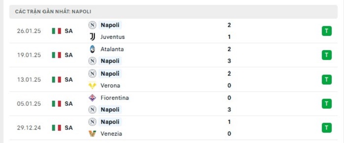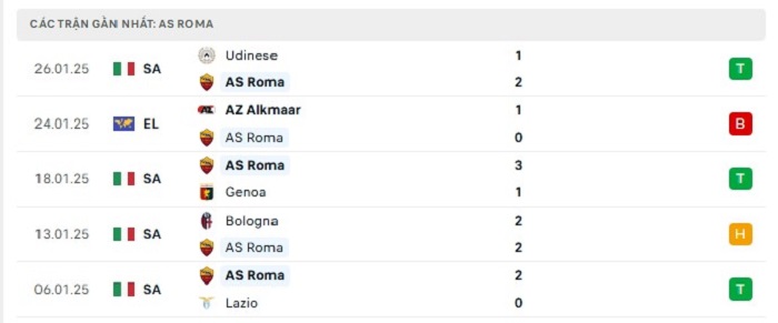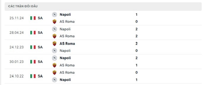 Bảng bóng đá trận đấu AS Roma vs Napoli