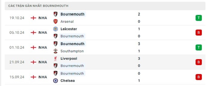 - Phong độ Bournemouth