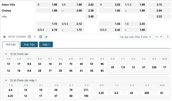 Soi kèo tỷ số Aston Villa vs Chelsea
