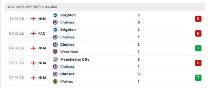 - Phong độ Chelsea