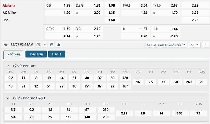- Dự đoán tỉ số trận đấu Atalanta vs AC Milan
