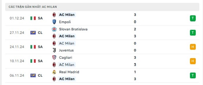 Bảng bóng đá trận đấu Atalanta vs AC Milan