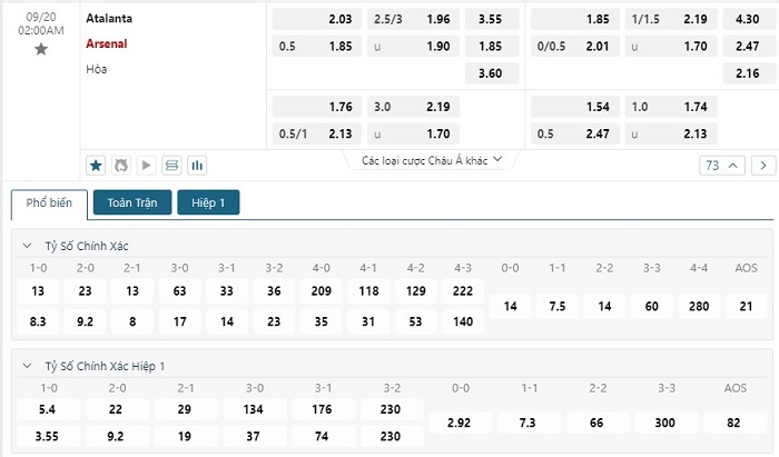 Atalanta sở hữu hàng công thi đấu khá tốt với 8 bàn thắng ghi được nhưng hàng thủ của họ cũng nhận tới 8 bàn thua, điều này giúp các trận đấu có sự góp mặt của họ ở giai đoạn đầu mùa giải thường xuyên xuất hiện tỷ số cao ghi được trong trận, sức mạnh hàng công của Arsenal là điều không hề phải bàn cải tại thời điểm hiện nay do đó mà tỷ số của trận đối đầu giữa Atalanta và Arsenal hoàn toàn có thể xuất hiện nhiều trong trận.