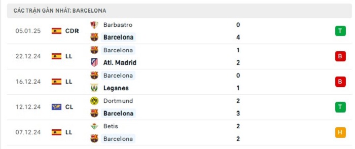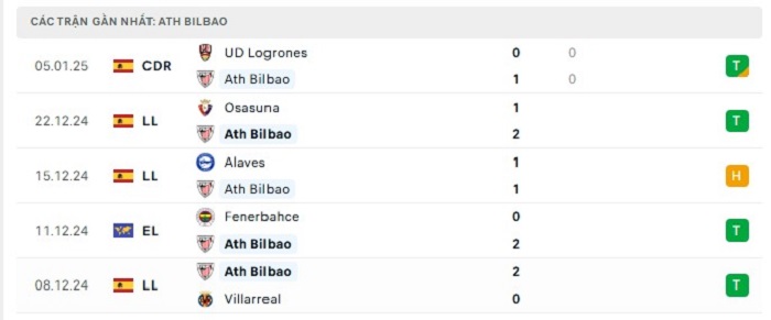 Phong độ gần đây Athletic Bilbao vs Barcelona