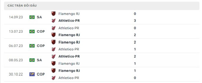 Lịch sử đối đầu của Atl Paranaense vs Flamengo
