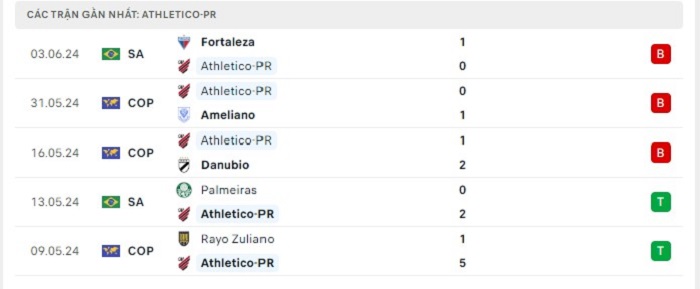 - Phong độ Atl Paranaense