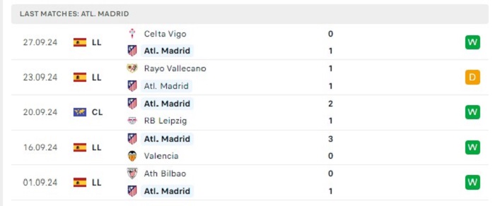 Phong độ gần đây Atletico Madrid vs Real Madrid