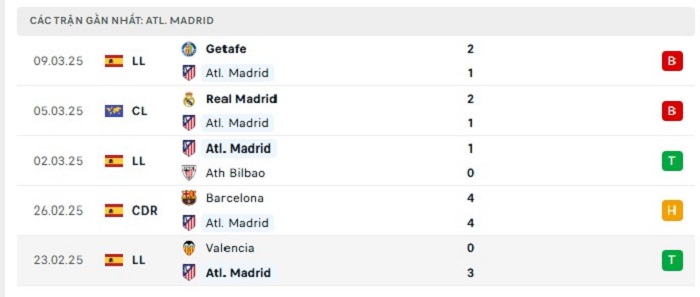 - Phong độ Atletico Madrid