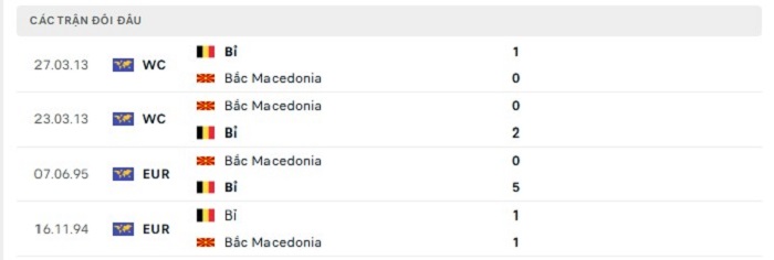 Phong độ gần đây Bắc Macedonia vs Bỉ