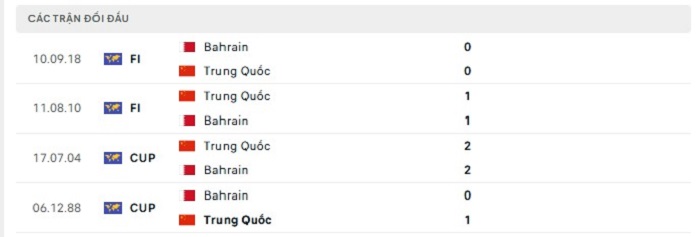 Trong tổng cộng 4 lần gặp nhau gần đây của hai đội Bahrain chưa biết tới mùi thắng lợi nhưng họ cũng chỉ thua 1 và hoà 3 theo kèo châu Âu trước Trung Quốc. Tại bảng đấu này với Bahrain phong độ và sự ổn định của họ đáng được nhắc tới hơn nhiều trong khi với Trung Quốc việc để thua kèo châu Âu 3 trong 4 trận đấu có thể thấy được khó khăn rất lớn của họ, vì vậy mà đây chính là cơ hội để Bahrain có thể cân bằng thành tích đối đầu của hai đội khi có được những ưu thế nhất định cho mình.