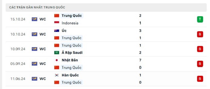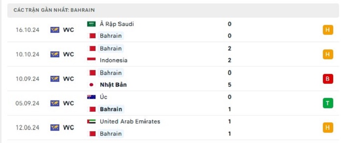 Phong độ gần đây Bahrain vs Trung Quốc