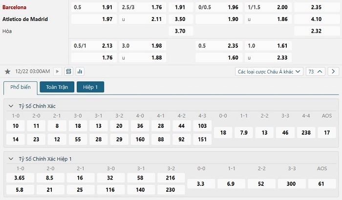 Soi kèo tỷ số Barcelona vs Atletico Madrid