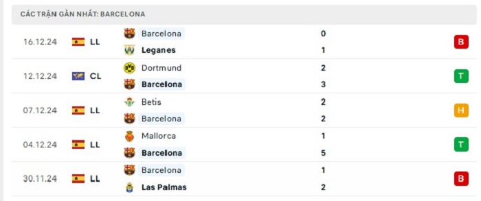Phong độ gần đây Barcelona vs Atletico Madrid