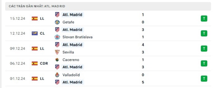 • Phong độ Atletico Madrid