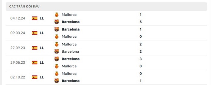 Lịch sử đối đầu của Barcelona vs Mallorca