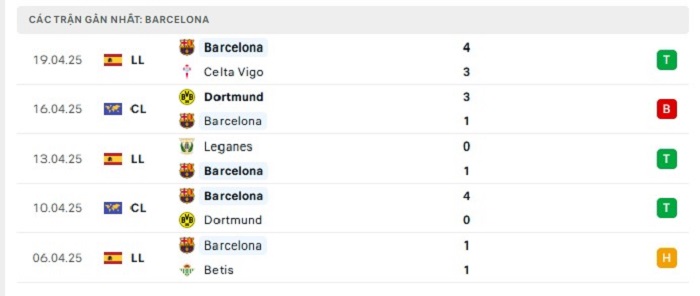 Phong độ gần đây Barcelona vs Mallorca