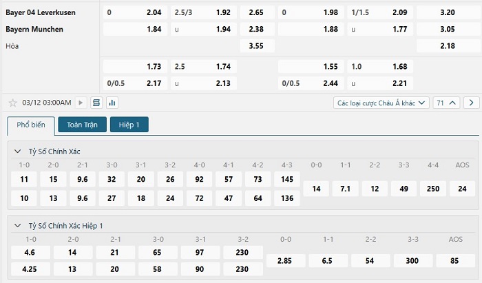 Soi kèo châu Á, kèo chấp Bayer Leverkusen vs Bayern Munich