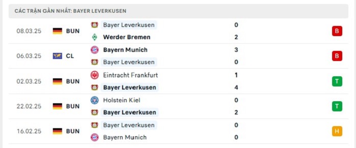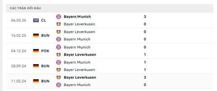 Bảng bóng đá trận đấu Bayer Leverkusen vs Bayern Munich