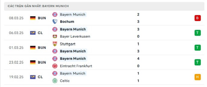 - Phong độ Bayern Munich