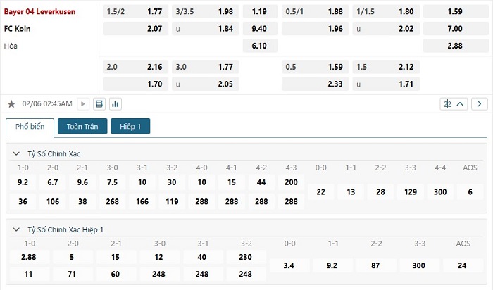 Soi kèo tài xỉu Bayer Leverkusen vs FC Koln