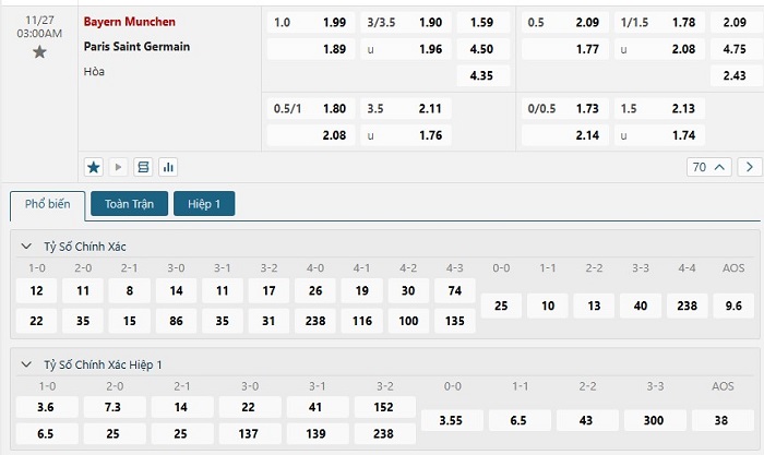 Soi kèo tỷ số Bayern Munich vs Paris Saint Germain