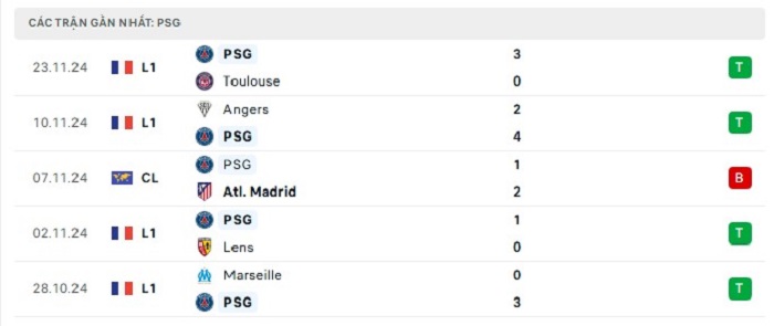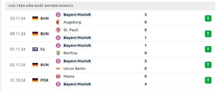 Phong độ gần đây Bayern Munich vs Paris Saint Germain