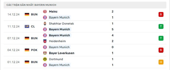 • Phong độ Bayern Munich