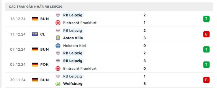 • Phong độ RB Leipzig