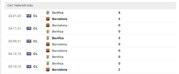 Bảng  bóng đá trận đấu Benfica vs Barcelona