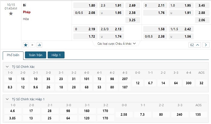 Soi kèo châu Á, kèo chấp Bỉ vs Pháp